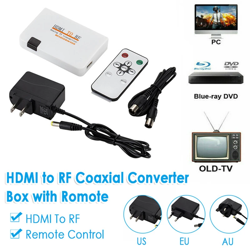 Buy HDMI To RF Coaxial Modulator Converter Analog Signal TV Transmitter Box Remote Control Zoom Support HDTV Monitor Projector online on Amazonae at best prices. Hdmi source devices on regular old televisions which come with coax analog signal output or demonstrate your multimedia documents from your laptop to your audience through a large screen projector simpllyNo more cables nor accessory. Converting coaxial cable to HDMI requires a powered adapter similar to an old RF modulator for converting coaxial signals.