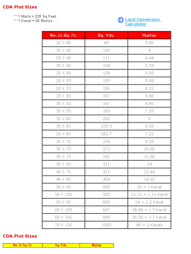 Cda Plot Sizes Pdf Foot Unit Acre